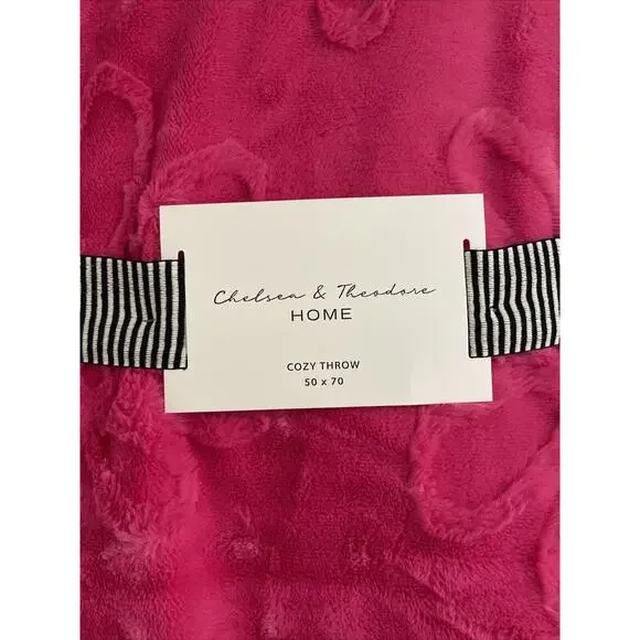 $78 MSRP! New with tags gorgeous, luxurious, super soft bright & vibrant HOT PINK throw blanket 50x70” throw blanket by Chelsea & Theodore. Soft, textured “Daisy” repeat pattern on front. Backing is solid soft “sueded” material.We have marching 20x20 pillow available (separately) at the time of this listing.