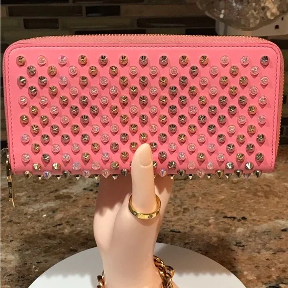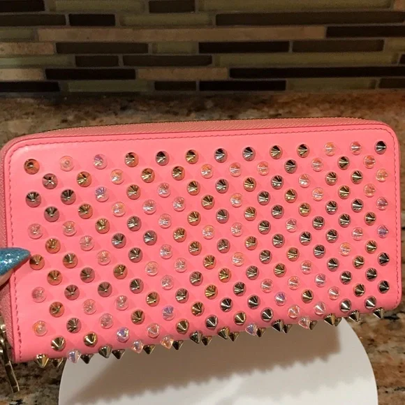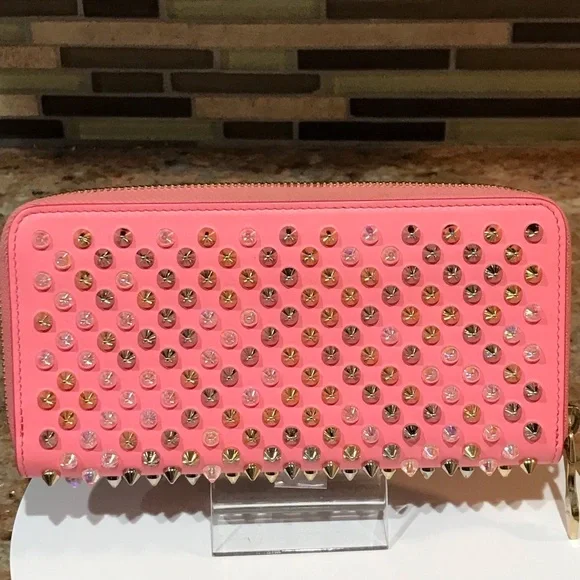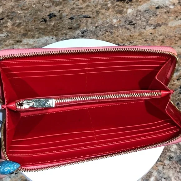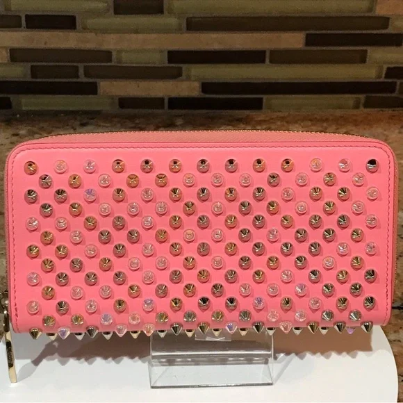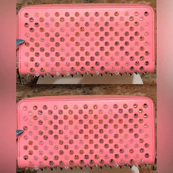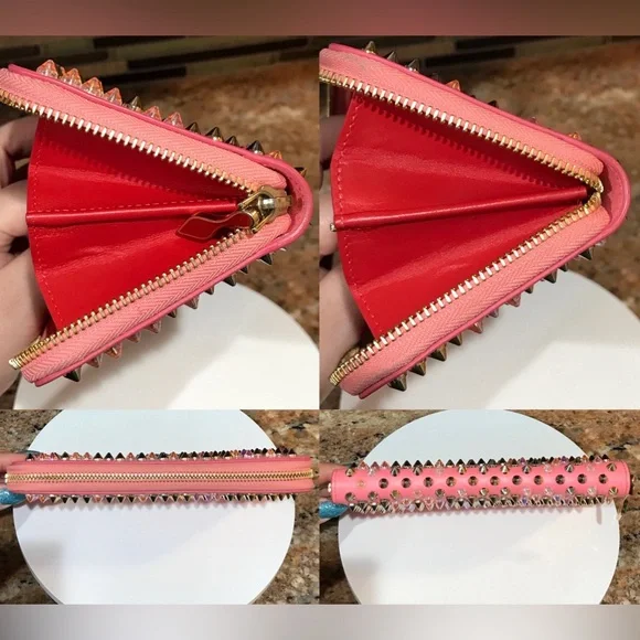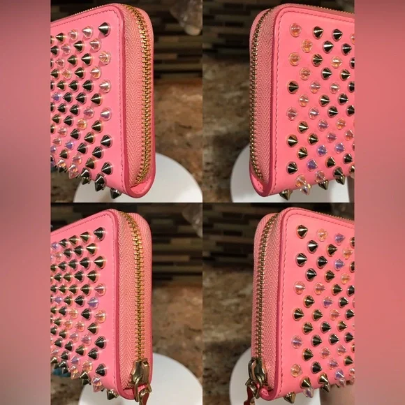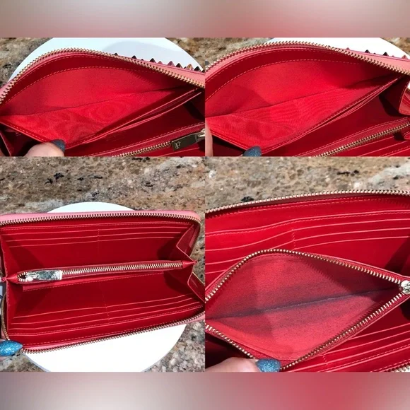 -Condition: Pre-owned โ ; in excellent condition โค๏ธ-Few interior marks; light coin residue -Color: Pink ๐ธ๐-Multi Tone Studs ๐คฉ-Material: Calfskin Leather-Zip Around Wallet -Credit card slots -Separated Compartments -Sheโs simply a stunner!!! ๐คฉโค๏ธ๐ฅโจ-Reasonable offers are welcome ๐ค